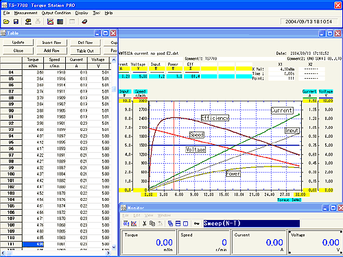 TS-7700交直流微小马达扭力测试系统应用Windows窗口操作接口,搭配多种 MT系列扭力检出器,可同时测试马达扭力、转速、电压、电流并透过计算功能 取得马达效率,更近ㄧ步的的将T-N测试曲线描绘出来 所有数据皆可储存于计算机内部并用于EXCEL等市售统计绘图软件